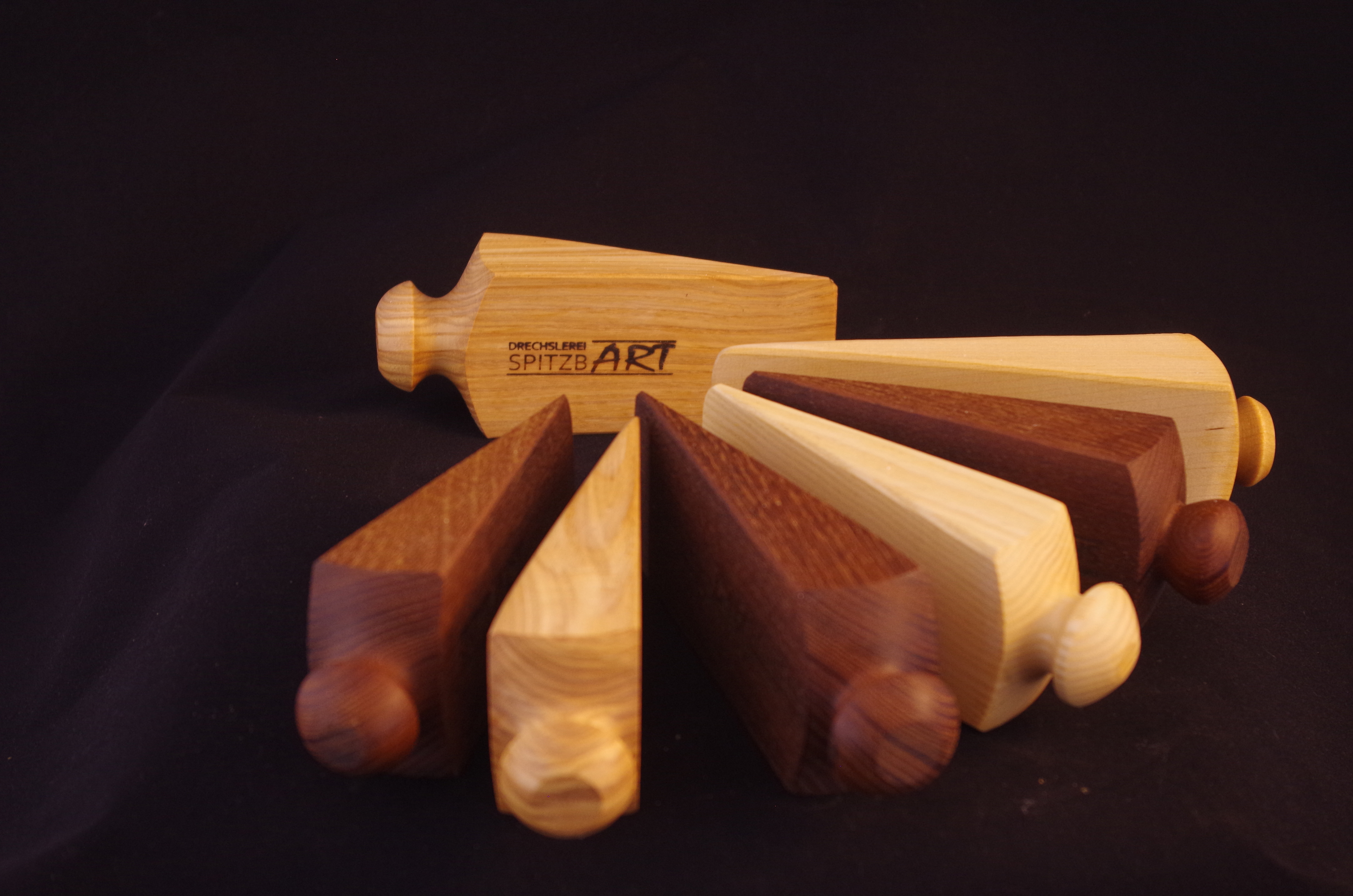 Ein sehr Praktischer Helfer. Der einfache Türkeil hat einen kleinen Gedrechselten Griff für eine bessere Handhabung. Es gibt sie aus Eiche, Buche, Esche. Die Oberfläche ist geölt.